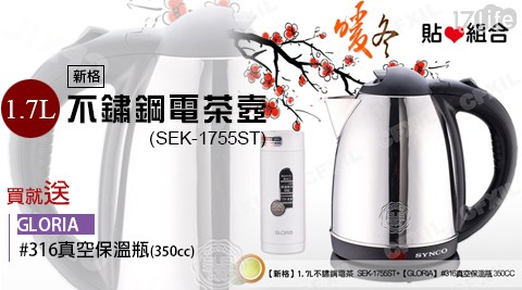 【新格】1.7L不鏽鋼電茶壼(SEK-1755ST)+【GLORIA】#316真空保溫瓶(350cc)沒有傻傻的就直接買了,因為在購物